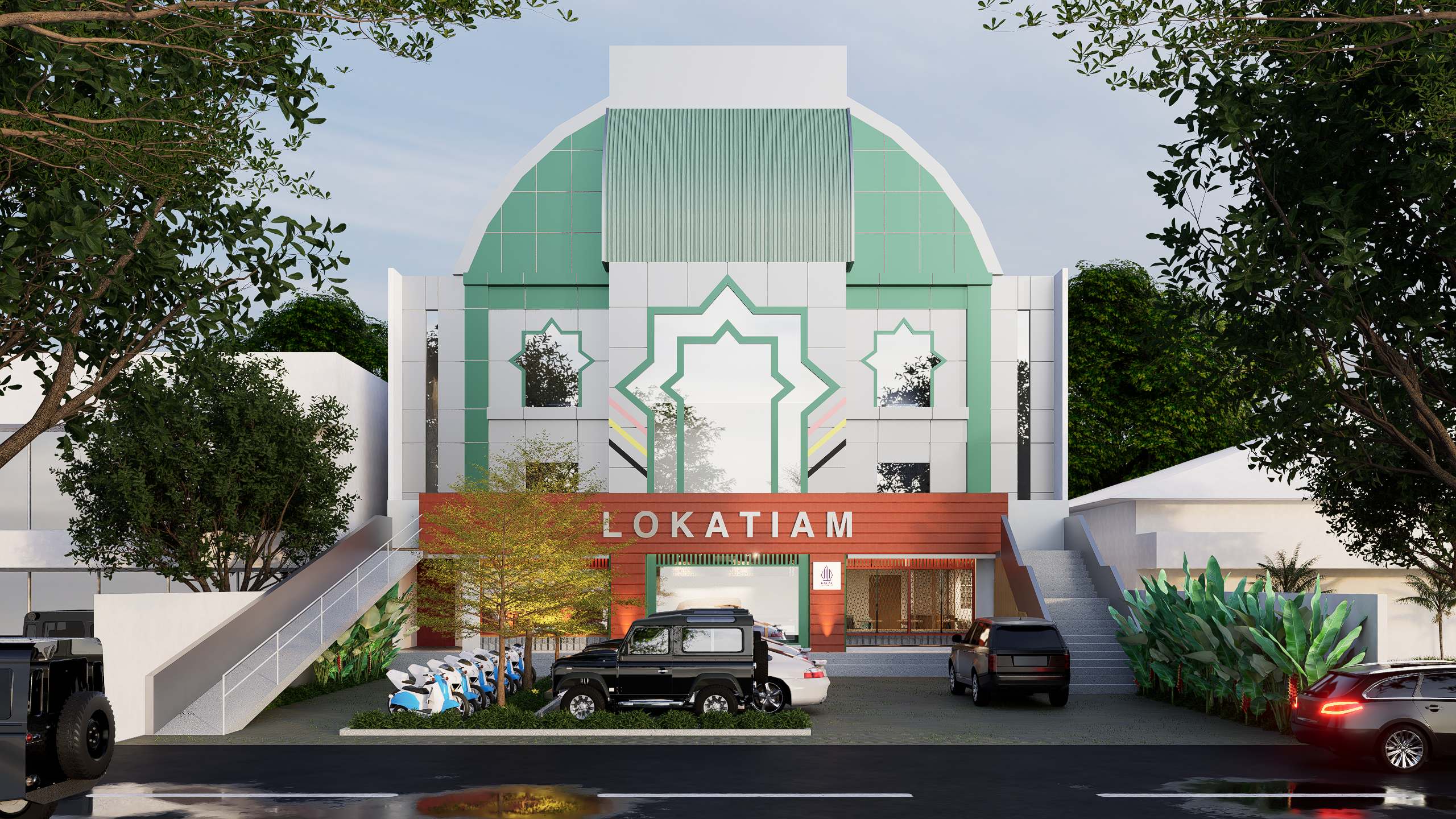 Sinaria Lokatiam Padang merupakan proyek kopitiam dan cafe yang mengusung konsep modern industrial. Desain interior berfokus pada penciptaan suasana nostalgi, namun diwujudkan dengan elemen-elemen kontemporer.